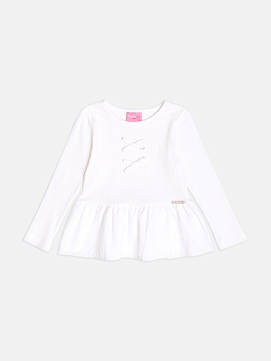 Blusa Infantil Canelada Com Lacinhos Off Momi