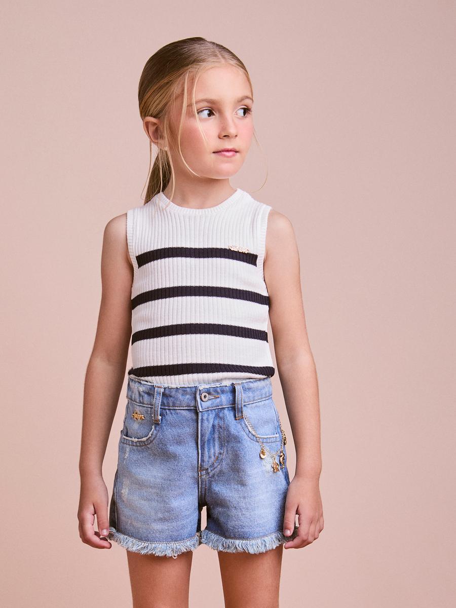 Esta blusa em Tricot marinho listrado é a escolha perfeita para dias mais frescos com um toque de estilo.