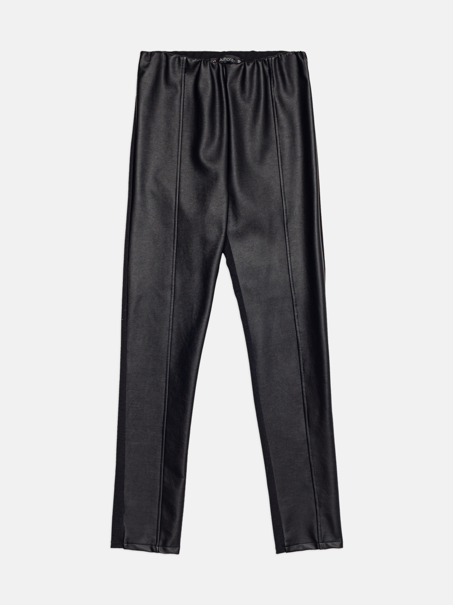 A calça fake leather preta é uma peça poderosa que traz um ar de sofisticação e ousadia ao visual. Com uma modelagem ajustada, em PU na frente e malha encorpada na parte de traz ela é perfeita para compor looks noturnos ou eventos que pedem um toque extra de elegância. Combine com blusas de tecido leve para equilibrar o look