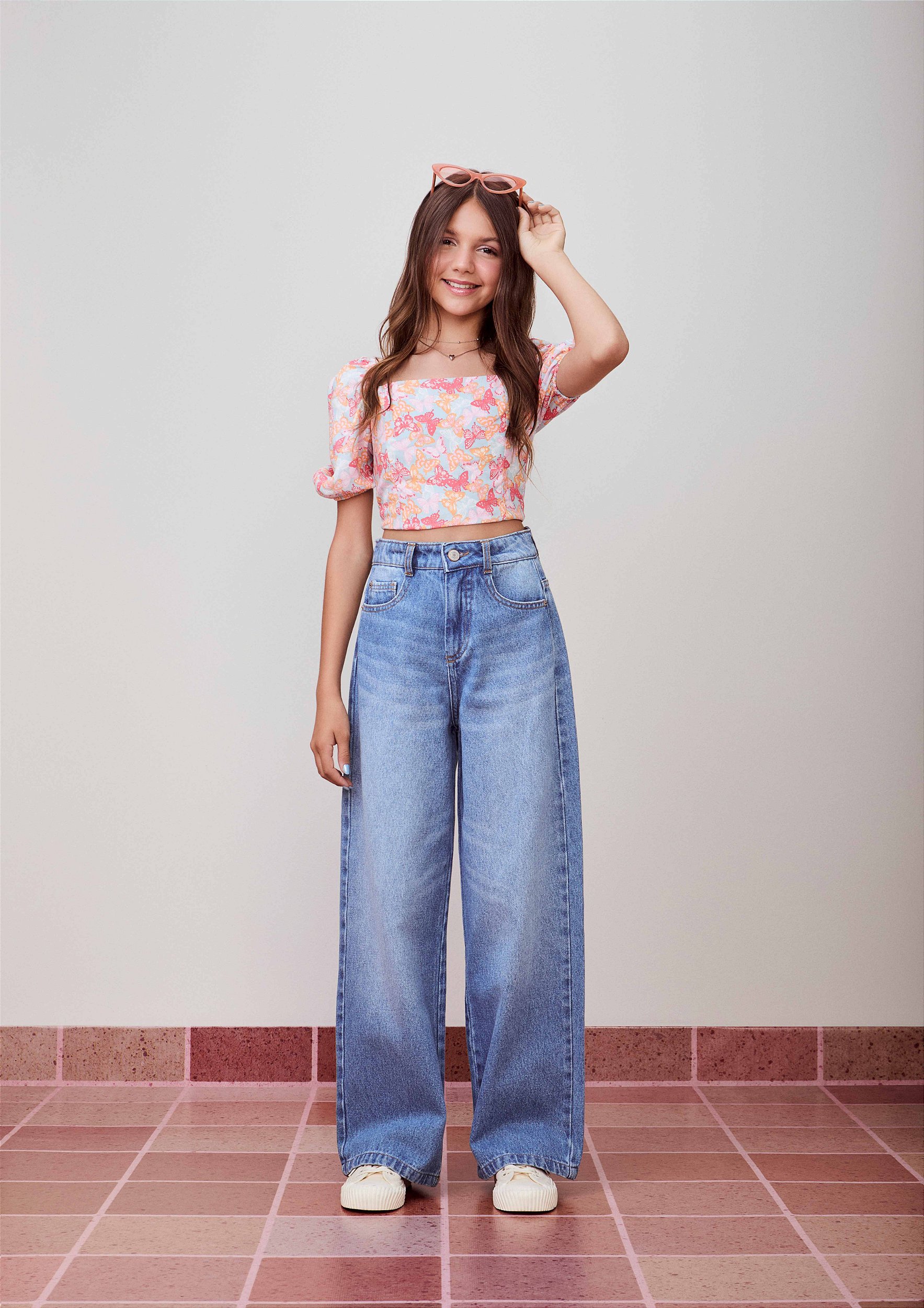 Moderna e confortável, a wide leg denim é uma escolha versátil para todos os momentos. Com lavagem clara e caimento amplo, ela funciona como base neutra para compor desde looks fresh até composições urbanas.