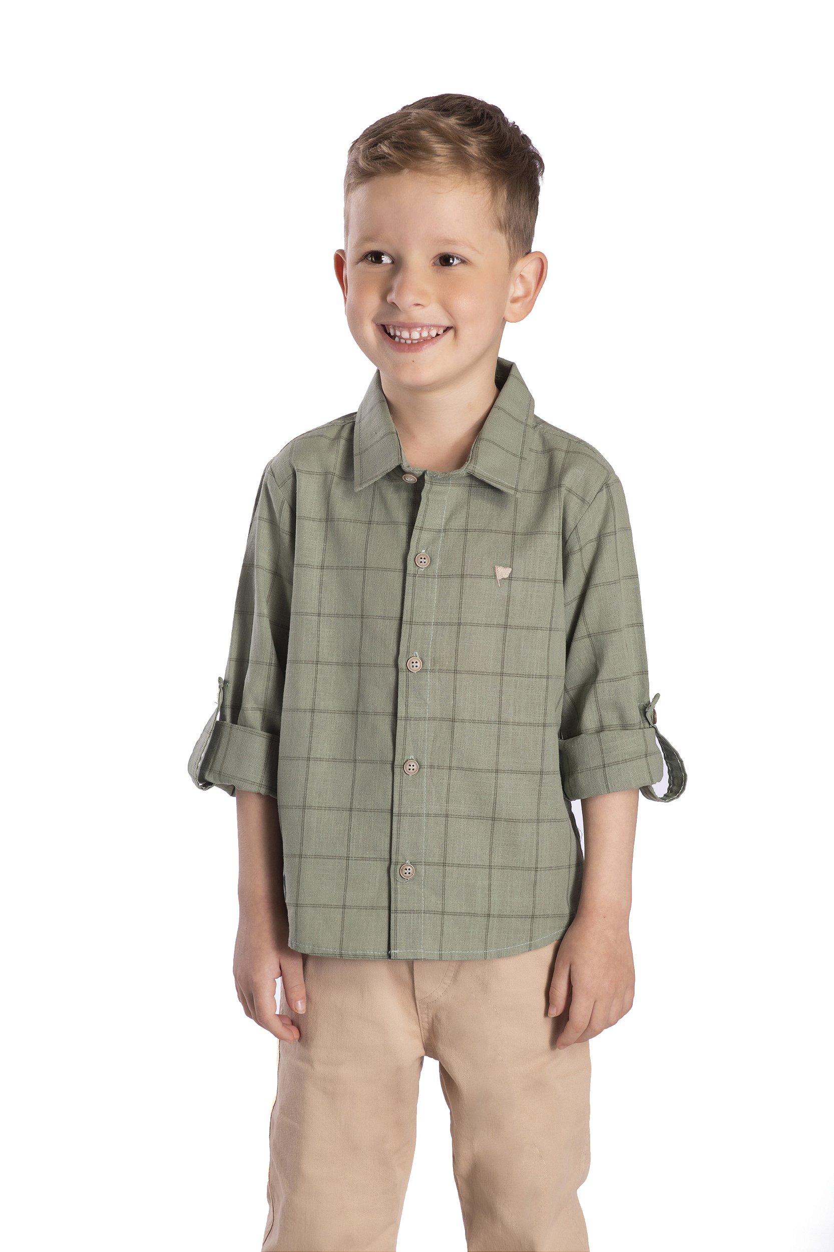 Camisa infantil xadrez Nini e Bambine na cor verde. Perfeita para deixar seu filho estiloso!