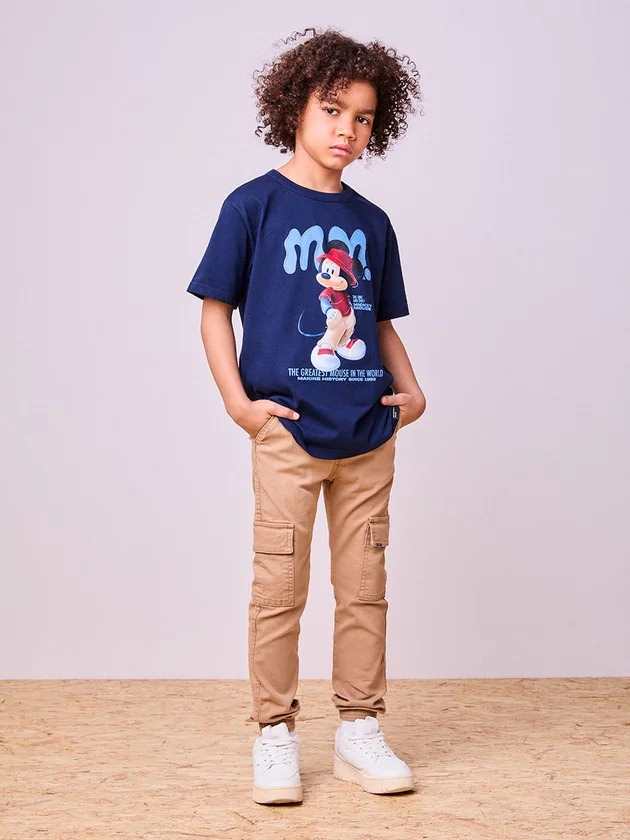 Para os fãs de Mickey Mouse! Esta camiseta azul marinho celebra o personagem mais icônico da Disney em um design moderno e cheio de personalidade. Com estampa frontal vibrante, é perfeita para meninos que querem destacar seu estilo único com um toque de nostalgia.
