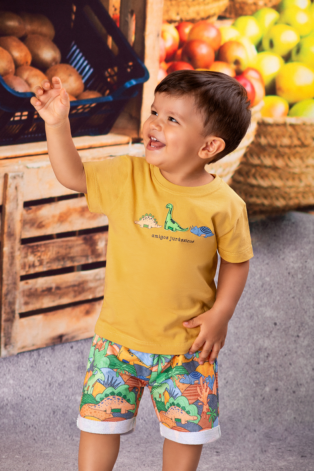 Conjunto infantil com blusa e shorts microfibra estampado. Perfeito para os dias quentes de verão.