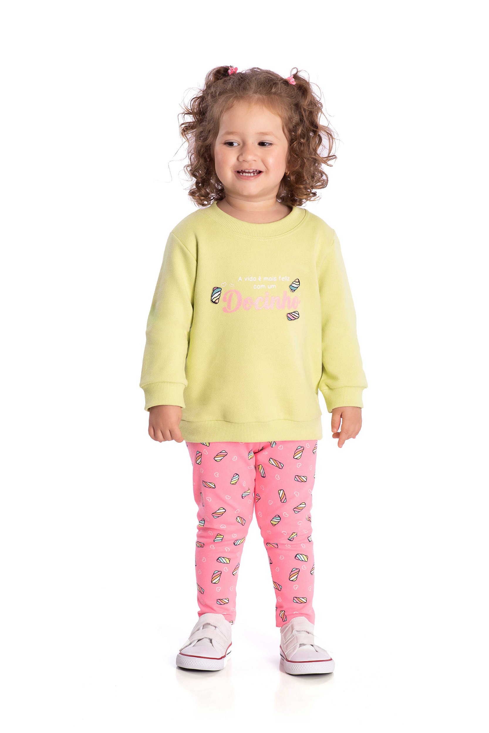 Conjunto infantil de moletom com legging Jaca lelè com arte divertida docinhos.