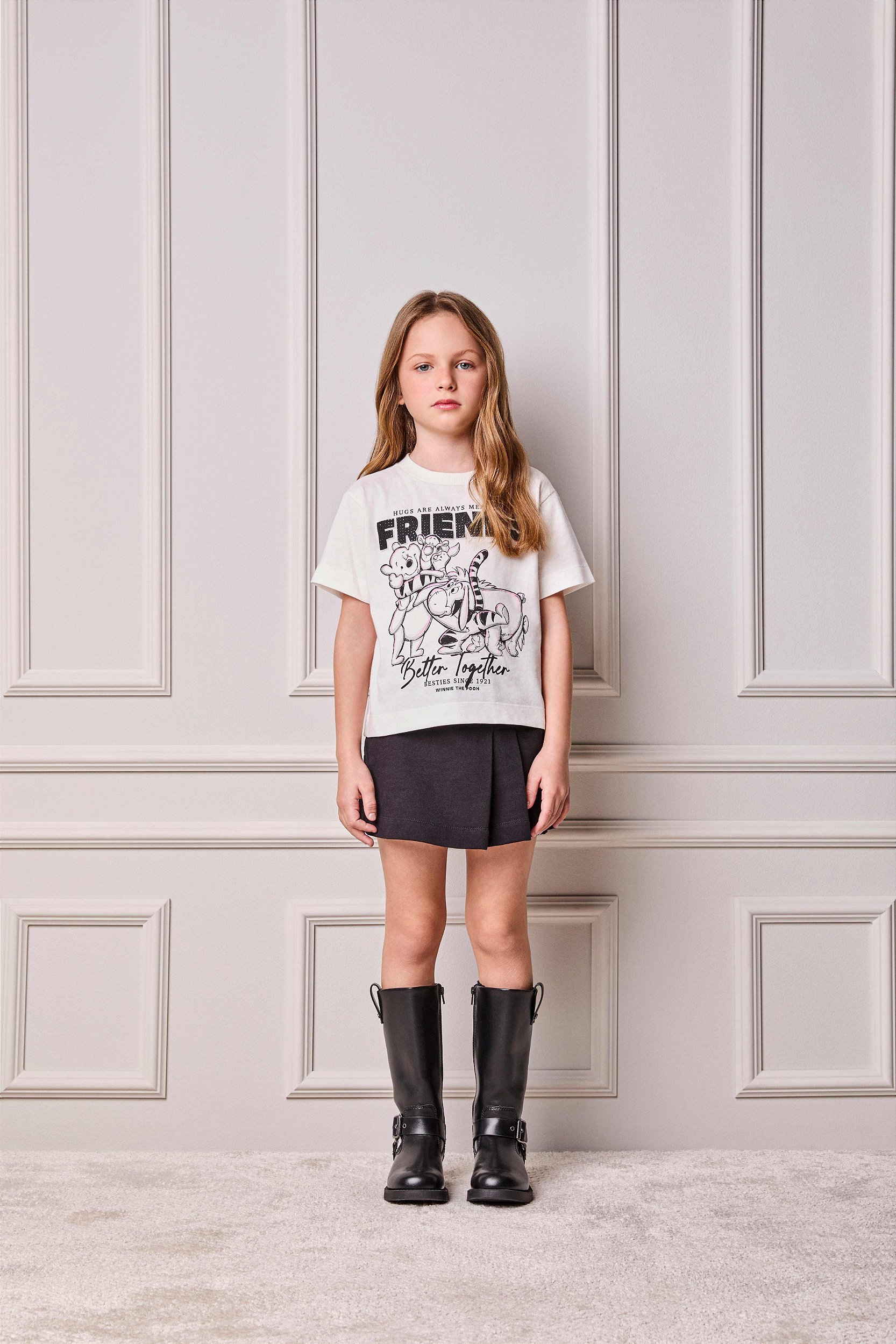 Aqui, o lúdico encontra o design sofisticado. A estampa da blusa traz os amigos do pooh, enquanto o shorts saia é uma peça prática para montar diversos looks. O acabamento cuidadoso transforma um elemento divertido em peça de impacto fashion, mantendo a identidade premium da marca. Ideal para quem busca emoção, personalidade e estilo em uma única composição.