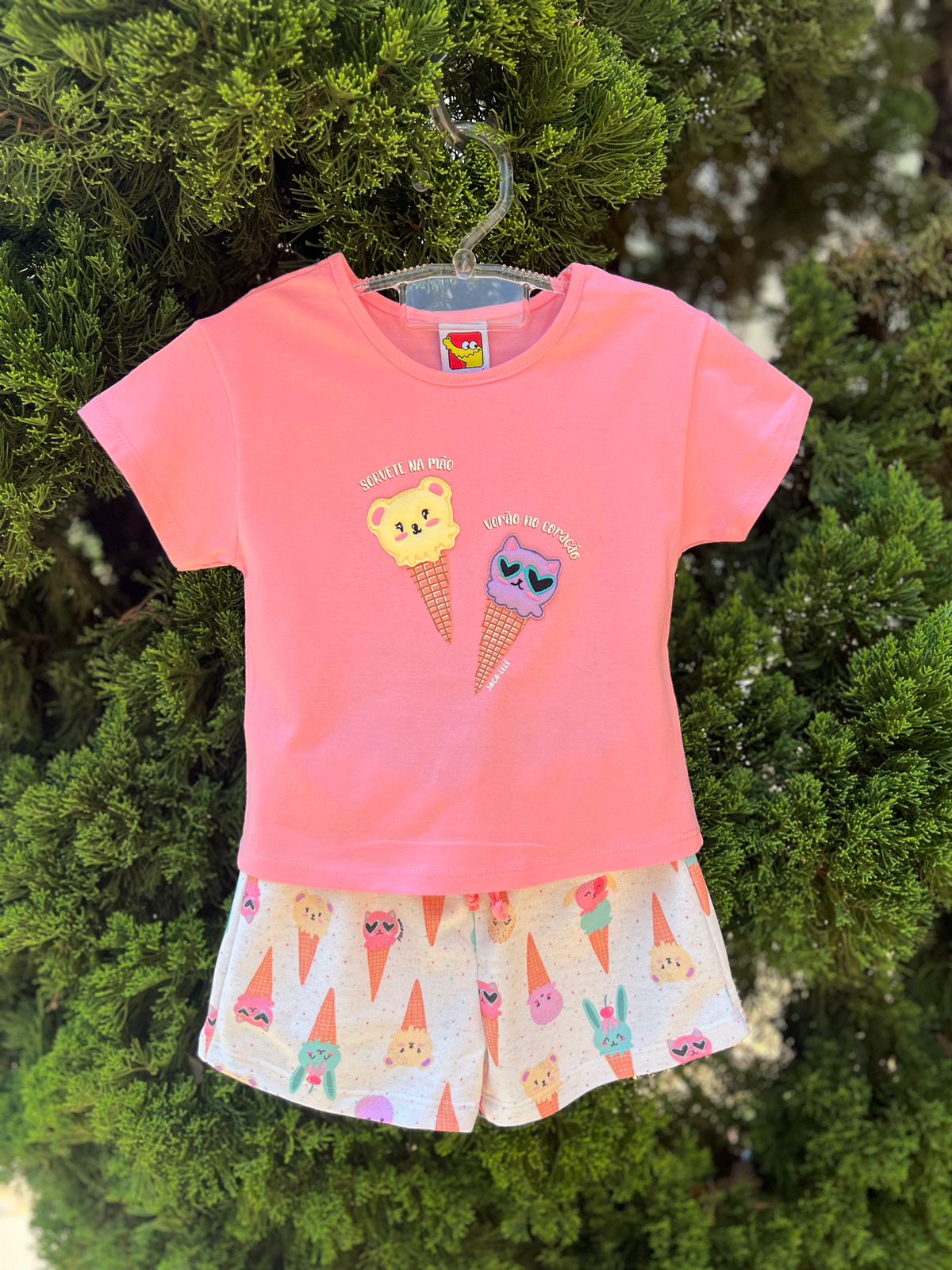 Conjunto infantil com blusa e shorts moletinho. Perfeito para os dias quentes de verão.