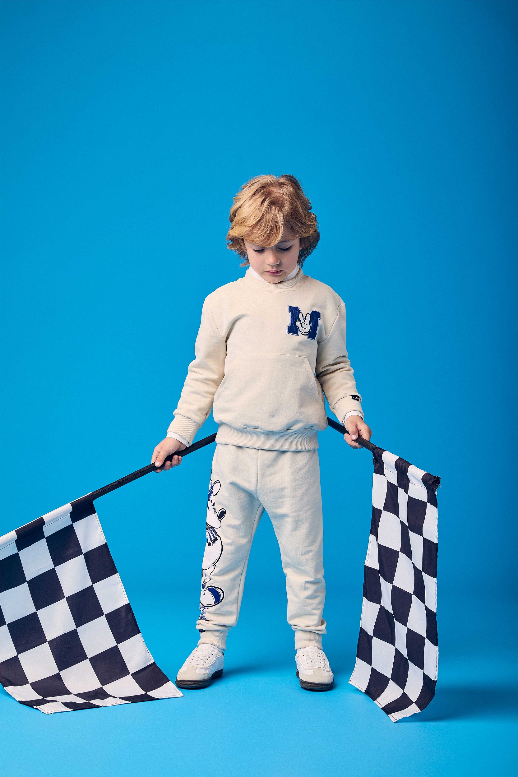 O Conjunto Moletom Infantil do Mickey Beisebolista combina conforto e estilo esportivo em uma produção marcante para os pequenos. O blusão em tom claro conta com bolso canguru, gola e punhos estruturados e um patch M com mãozinha em sinal de paz, trazendo charme e identidade. A calça complementa o visual com uma estampa grande do Mickey em estilo beisebolista, reforçando o mood divertido. Feito em moletom macio, o conjunto oferece aconchego, liberdade de movimento e praticidade para o cotidiano, passeios ou momentos de diversão. Um look completo e versátil que acompanha a criança em qualquer ocasião.