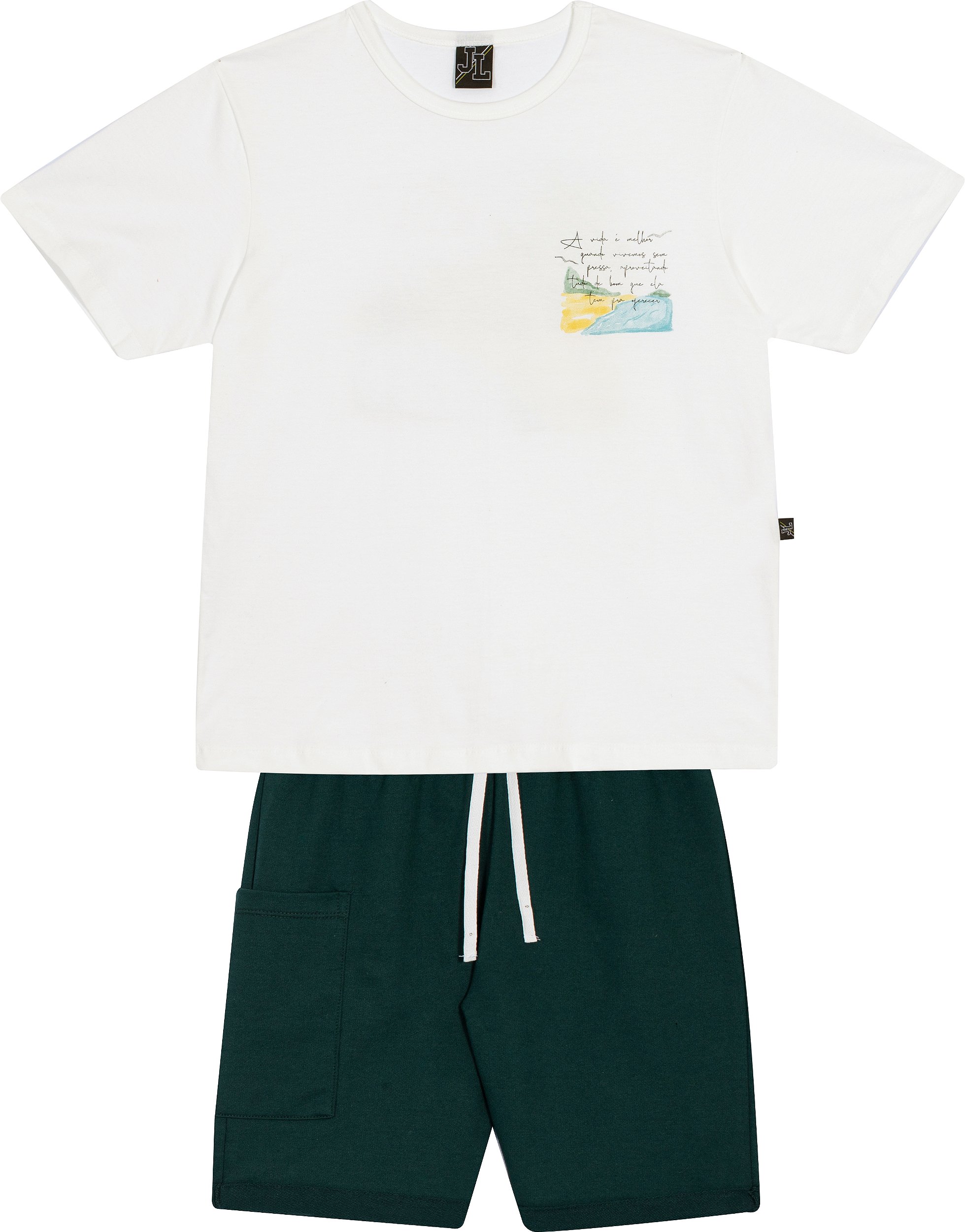 Composição - Blusa 100% Algodão e shorts 75% Algodão com 25% Poliéster