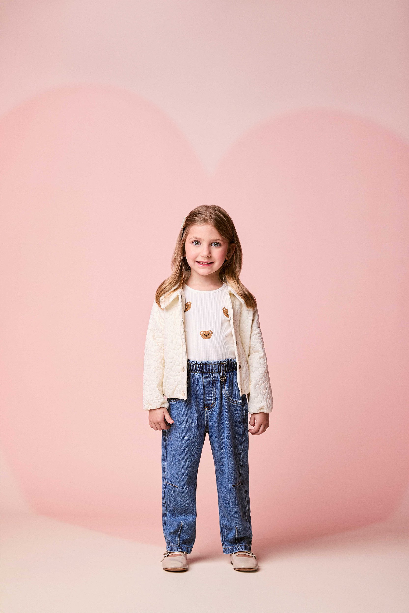 Jaqueta Infantil Matelasse Flores Off White Momi