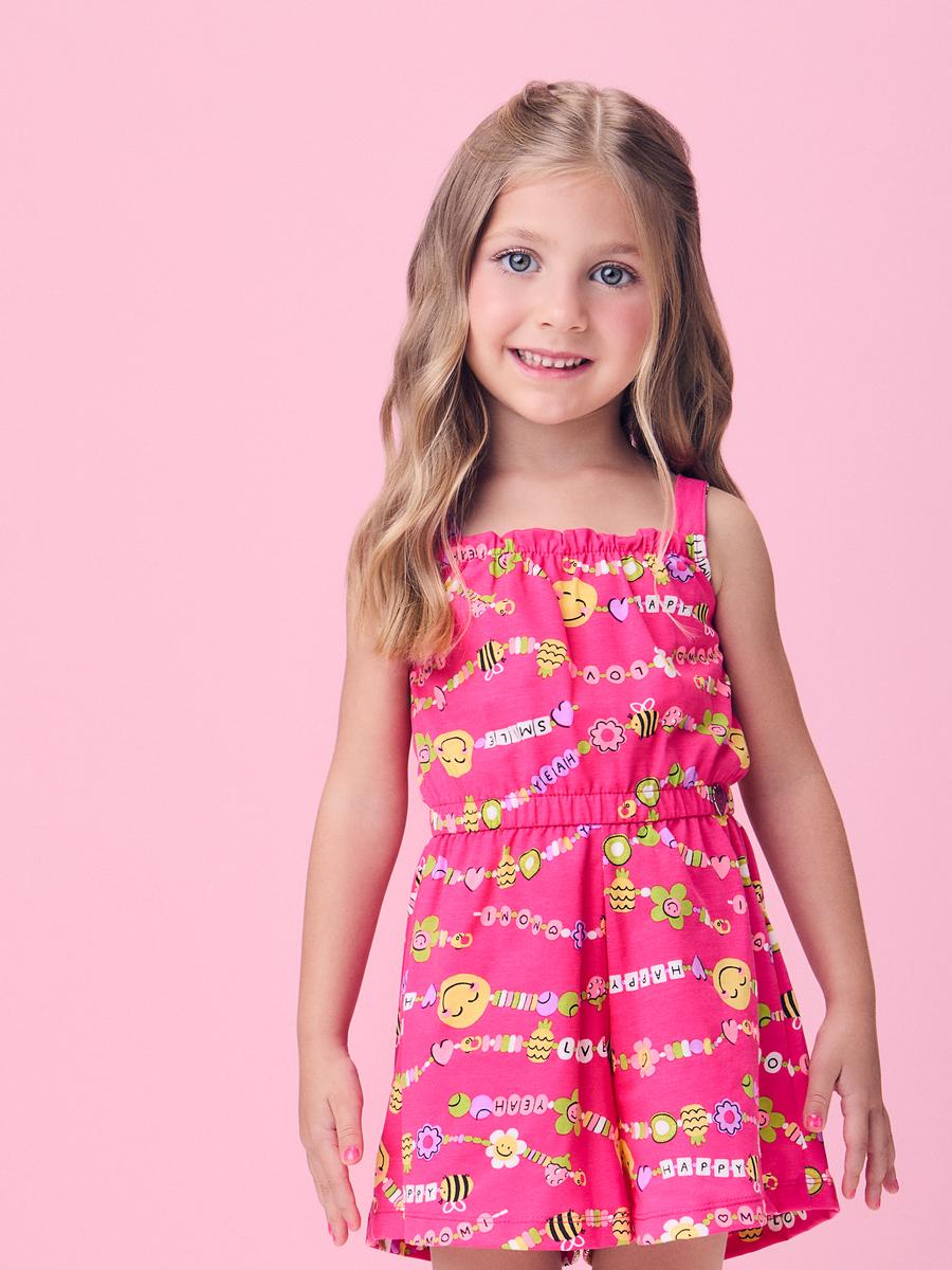 O macaquinho infantil azul com estampa divertida do Stitch é um modelo que possui alças delicadas, babados no decote e elástico na cintura, garantindo ajuste perfeito e muito conforto. A peça ideal para um look leve e cheio de personalidade, perfeita para dias de diversão.