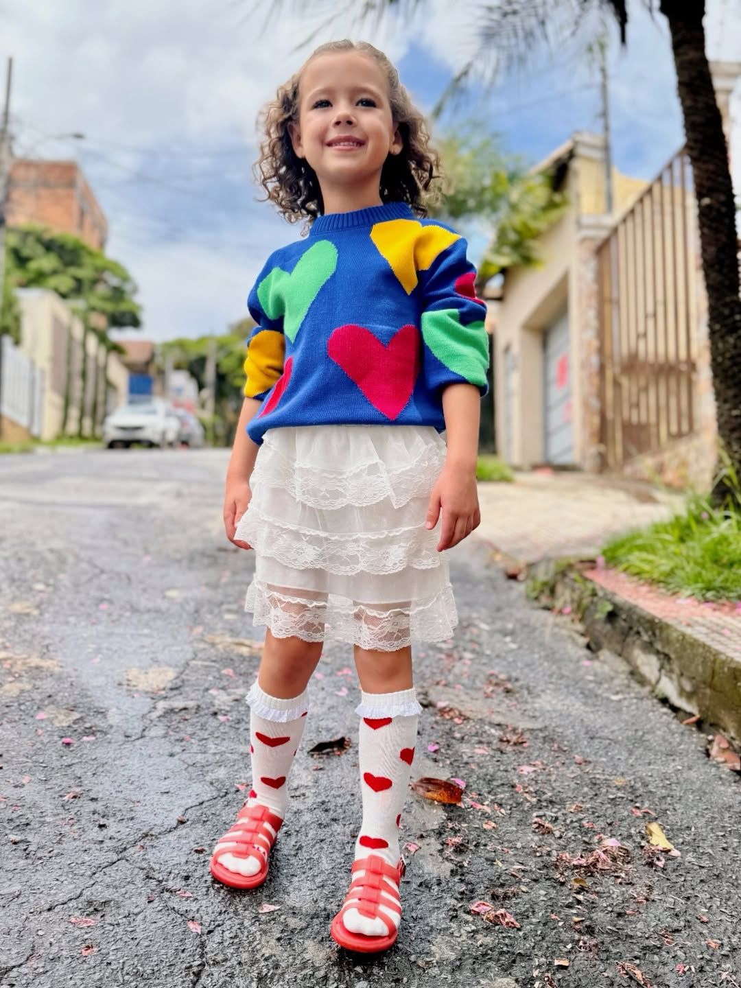 Meia 3/4 Sweet Like Coraçoes Cantarola