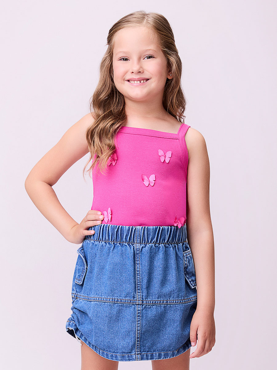 Linda regata na malha caneladinha com apliques na cor Pink. Uma peça perfeita para compor looks.