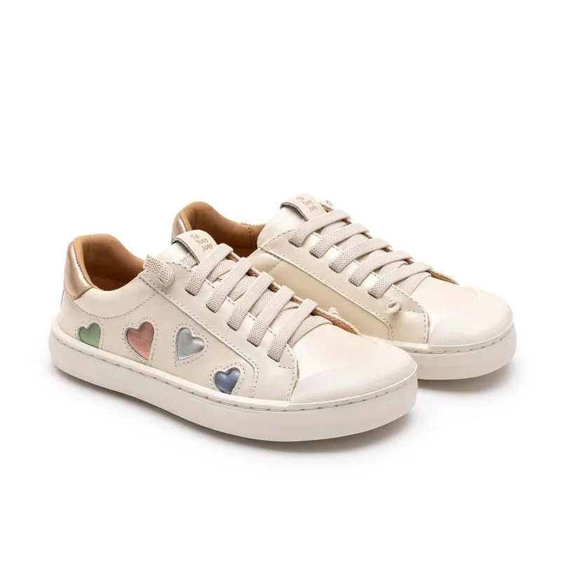 Colorido de amor e cheio de conforto, o tênis Love 4 All acompanha cada passo com leveza. O bico é amplo para deixar os dedinhos livres, o solado fininho e flexível ajuda a sentir o chão e os cadarços elásticos dão aquele calce fácil (entra e sai rapidinho, sem precisar amarrar ou desamarrar). Em couro extra macio, tem corações aplicados na lateral e palmilha removível para facilitar a limpeza.
