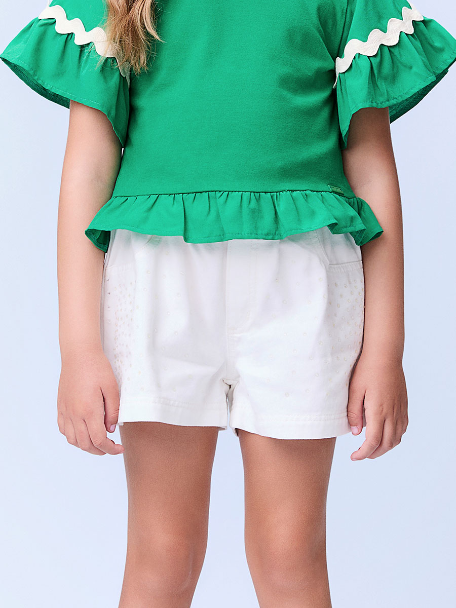 Shorts De Sarja Com Strass Off White Momi
