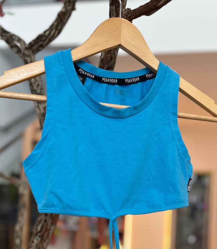 Top azul amarração azul Poah. Perfeito para dias quentes, para combinar com shorts e saias.