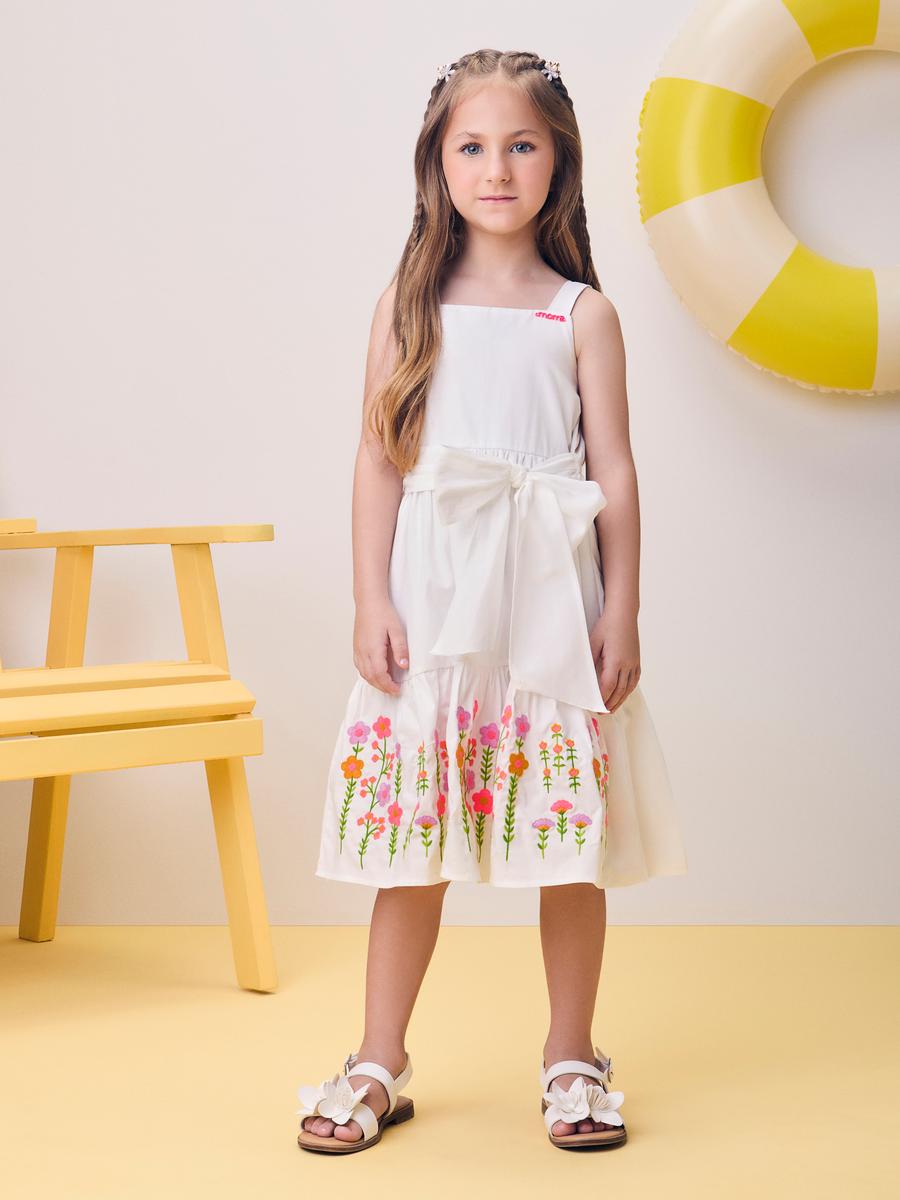 Uma peça que é sinônimo de romantismo! O vestido traz tecido leve e confortável, com alças largas e saia em camadas, que garantem movimento e fluidez. O grande destaque são os bordados florais aplicados na parte inferior da saia, que adicionam um toque artesanal e encantador. Ideal para ocasiões especiais ou para deixar o dia a dia muito mais fofo.