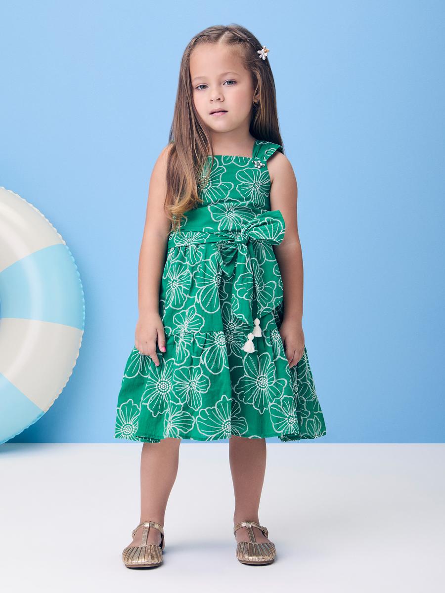 Vestido Infantil De Laise Flor Bordada Verde Momi